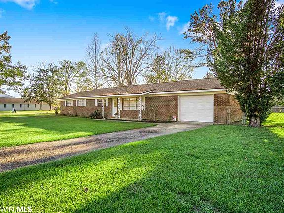 Small town charm located close to Daphne, Loxley, Gulf Shores and Fairhope. Tired of small lots, stringent and expensive Home owners associations, and cookie cutter looking houses, then have a look at this property. Situated on an oversized large 1/2 acre corner lot, This 4 bedroom 2 and 1/2 bath home has been well maintained and recently updated to included laminate Wood Flooring, Tile in the baths and carpet in the bedrooms. The owner also has recently painted the interior, installed 2" faux wood Blinds on all windows, PUT A NEW ROOF on it 3 years ago, REPLACED THE HVAC 5 years ago, painted the cabinets and has it looking great and move in ready. The private master bedroom is huge and has an attached master bath and extra large walk in closet. The den has a wood burning fireplace and is located just off the kitchen and morning room area. The attached garage and utility room are spacious and allow access from the front and back yard. The entire back yard is fenced for your pets or to park a Boat, RV, ATV or all of your toys. There is even a double gate to allow for access for them. It's easy to view anytime.