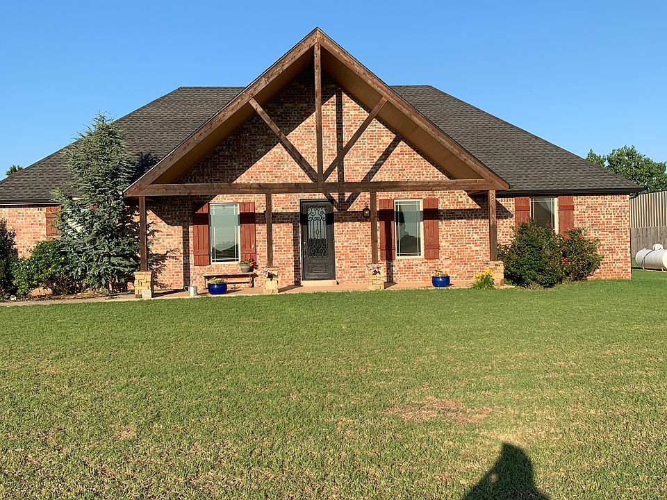 Come and see this charming country home on 1 acre. This home offers 4 beds and 2 baths, 4th bedroom also works as a study/office, and all guest rooms have walk-in closets. Cozy up next to your living room fireplace and enjoy surround sound while watching movies this upcoming fall! With built-ins throughout and hardwood floors this home has it all! Kitchen is fully equipped with stainless steel appliances, granite counter tops, farm sink, and a 5 burner gas stove as well. The master suite offers 2 walk-in closets with built-in shelving and an over-sized stone shower with niches. Your new over-sized laundry/mudroom will make doing laundry enjoyable at last! Enjoy the view of no neighbors on your 1 acre lot this summer under your covered patio! Schedule your showing today, you won't want to miss this one!