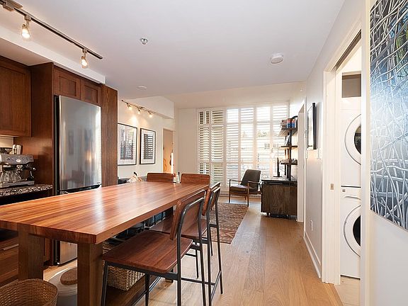 Welcome to The Vine! This concrete condo has an excellent floorplan. 1 Bedroom and den plus flex space. Large den could be a second bedroom. 9' ceilings in living room and den. Open plan features large island, and brand new hardwood floors. Granite counter-tops. Stainless steel appliances, . Fantastic location in Kitsilano , close to shopping, restaurants and transit, and upcoming Broadway Skytrain station. Well maintained building with proactive strata. Pets and rentals allowed. This is a great home or investment property.