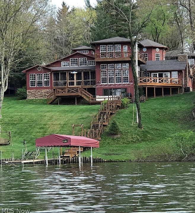 Enjoy beautiful sunsets and views from the deck of this custom designed Ohio lakefront property; 4-bedroom/6-bath Nantucket Style Cape Cod 7,000-SF home on approximately 1.4 acres in Sherrodsville. This designer floor plan delivers a master suite with separate shower, vanity, large steam shower, walk-in closet, linen closet, impressive dining room, magnificent great room with wood-burning fireplace for chilly nights, wood floors, surround sound, wet bar, inviting gathering room, professional kitchen with dishwasher, granite countertops, wine rack, custom cabinets, breakfast bar, ice maker, appliances included, gas range, under-counter lights, microwave, walk-in pantry for groceries, indoor grill and cooktop. Separate Spa with indoor hot tub, steam room and sauna. Home is being sold completely furnished including 2 boats, dock, lift, canopy, grills, outdoor furniture, etc., $1,250,000. Property shown by appointment only; listing agent needs to be present for all showings. PRE-APPROV