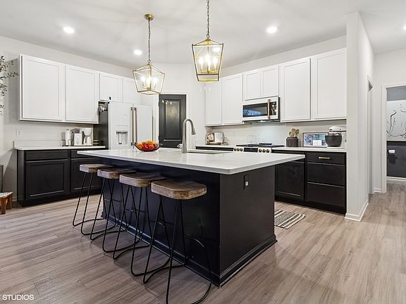 Welcome to this stunning, newly built home that sits on a corner lot! This modern two-story gem looks straight out of a magazine, and the attention to detail catches your eye as soon as you walk in! This home features over 3,200 square feet of luxurious living space, six total bedrooms, 2.5 bathrooms, and a three-car garage! As you step inside, you'll be greeted by soaring 9-foot ceilings, a spacious open floor plan, a dining area, and a versatile study ideal for work or relaxation! The chef-inspired kitchen includes quartz countertops and flawless white and gold, top-of-the-line appliances, including a Cafe 6-burner smart range with a double oven, a four-door smart fridge, a dual convection dishwasher, and an over-the-range microwave with a built-in air fryer! The breakfast island can seat four comfortably and flows effortlessly into the expansive family room, creating the perfect space for entertaining! The main level also includes a magazine-worthy office/bonus room that can be used for anything you need, and is perfect for those working from home! Throughout the home, you'll find custom, updated lighting fixtures, LED recessed fixtures, and professionally painted accent walls that give this home so much character! A convenient first-floor laundry room/mudroom with direct access to the oversized garage adds to the home's practicality. Upstairs, you'll find four generously sized bedrooms and a master suite with an oversized master bathroom that includes dual quartz vanities, a walk-in shower, and a separate linen closet! The basement is partially finished with black ceilings, an area for a home gym, two additional bedrooms, and a one-of-a-kind, custom-built playhouse for the children! There's plenty of space left to customize however you please! Step outside to a fully fenced backyard with a lit, stamped concrete patio, a designated grilling area, and a gazebo, making this backyard one of the best for entertaining friends and family! This home also comes with a builder's 10-year warranty, ensuring peace of mind for years to come. As part of the family-friendly community, you'll have access to a clubhouse, swimming pools, a fitness center, tennis courts, parks, bike paths, and even an onsite middle school. Don't miss the opportunity to make this dream home yours!