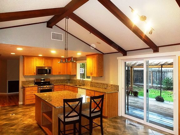 Amazing family home in a well established East Medford neighborhood,close to great schools, the hospital and shopping Amazing family home in a well established neighborhood,close to schools, hospital and shopping. This home had a complete makeover in 2010. The gourmet kitchen is a chef's dream, granite countertops with an island, handmade wood cabinets with an abundance of storage,a Frigidaire gallery 5 burner gas flat top and the flooring boosts amazing tile work. The house has an open floor plan with the kitchen as the centerpiece in between two family rooms. The remodel included all new double pane windows and a new hybrid HVAC system that uses both gas and electric depending on efficiency. The home has 4 spacious bedrooms, designed for growing family. The bathrooms were upgraded to beautiful tile design work in both the showers and countertops. The backyard is made for entertaining with expansive decking for BBQ's and don't miss out on the playhouse for the kids.