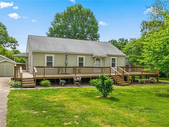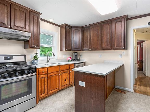 Your new home awaits you! Step inside to this inviting home where charm meets classic. Featuring 3 bedrooms and two full baths. The kitchen boasts quartz countertops & stainless steel appliances including a gas stove. Original hardwoods in dining, hallway & second bedroom add warmth & character. Primary bedroom featuring a large bathroom with a huge walk in shower. The unfinished partial basement provides ample storage space for your belongings. Basement has second washer/dryer hookups and electricity. Never worry about power outages with the added convenience of a whole-house gas generator. This home sits on a double lot with plenty of space for outdoor activities. Two wired workshop/storage buildings with a 50 amp plug for welding and 30 amp plug for a camper. Large additional parking space that can be used for a camper. Convenient location. Replacement windows 2015.