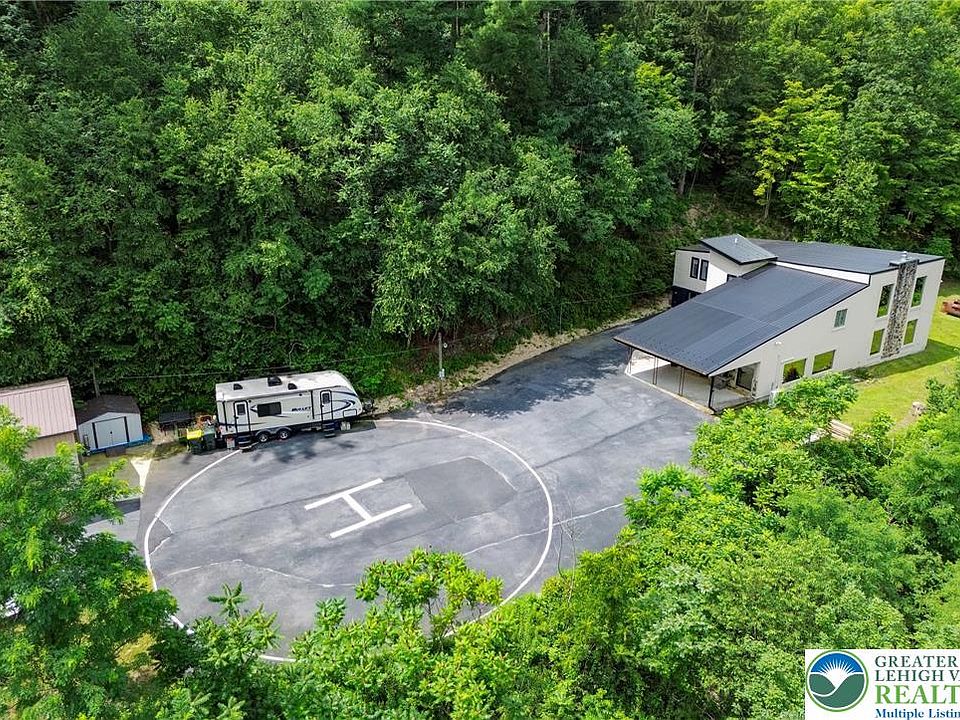 One-of-a-kind, Completely Remodeled, Custom-built, Contemporary, Secluded Property with/ Countless Upgrades Built for those w/ exquisite taste. This 4 Bd 3 1/2 Bth Home carved into a mountainside; Separate In-Law Suite, Helipad, Electronic Gated Access, Detached Heated and Air-conditioned, 28x50 ft, Hanger on 6.359 acres, is sure to impress. The owner has completely renovated the interior. Porcelain, marbled tile flooring ushers you into a Gourmet Chef Kitchen, with CAFE White Appliances, Center Island w/ vent on 11' Man Made Quartz Counters, and Porcelain backsplash. Butler's Pantry of Solid Quartz flanks a Custom 10' Quartz Table, recessed lighting, large windows, and 1/2 bath. New kitchen window. A spiral staircase provides 2nd access to the loft area. Herringbone porcelain tile frames an expansive, open LR with a 2-story stone wood-burning fireplace, and access to the backyard deck. A Separate Guest Suite completes the 1st floor with/ its Laundry, Kitchenette, and Ensuite Bath Walk-in shower and jacuzzi tub. Wooden staircase takes you to the expansive Open, Lounge with/ 2nd story balcony access. Primary bedroom boasts electronic shades, ceiling fan, recessed lighting, and EnSuite with Italian Tile, walk-in tiled shower and Jacuzzi tub, and laundry. 2 other BRs w/cork flooring, heated, storage, and 3rd Full Bth complete the 2nd FL. Home is Freshly Painted, New Electrical, and New Trim throughout. This is your chance to own your private oasis, min from major highways.