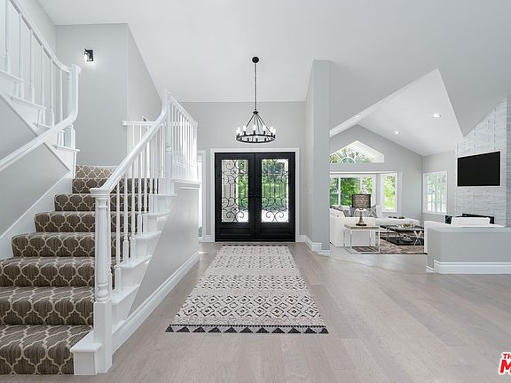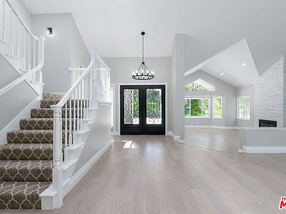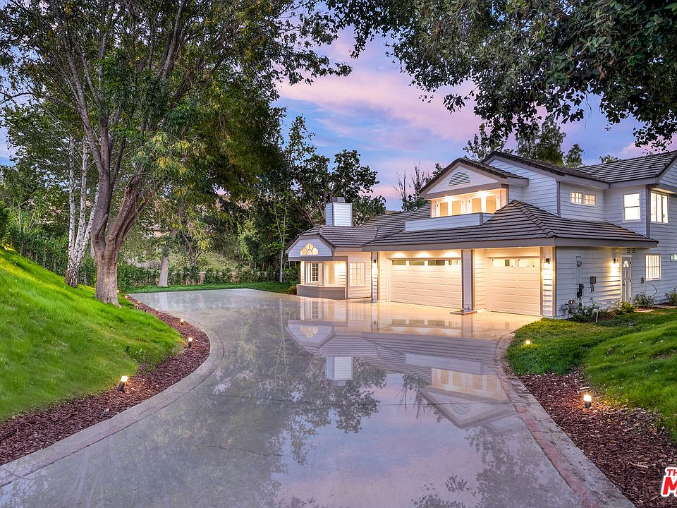 PRIVATE! VIEW! LARGE LOT! FULLY REMODELED! Drive down the private drive to one of the largest lots in the highly desirable Ranch View Estates. Over 1/2 acre property surrounded with rolling hills and mountain views. High ceilings, gorgeous light fixtures, sky lights and recessed lighting throughout this top-of-the-line home. New hardwood flooring and marble tile, new paint inside and out, copper plumbing, and brand new dual air conditioning/heater units. Enter through the ornate double doors to this light and bright, impeccably renovated exquisite estate! Living area is open and well designed with 2 fireplaces (living room and family room), bay windows, dual paned windows, and French door access to the yard. Gourmet kitchen has farm sink, Viking appliances, quartz counters and quaint breakfast nook with bay window. Half bath and laundry room are easily accessible and just down the hall are 2 lrg bedrooms and bathroom. At the end of the hall is the downstairs Master suite (1 of 2) with French doors, jetted free-standing tub, shower, separate dressing area and walk in closet. Just upstairs awaits your private and 2nd Master suite; a 2nd family room that boasts a 3rd fireplace at the top of the stairs leads to double doors that open to a beautiful suite w/ private balcony and spa-like bath oasis. 3-Car garage, room for pool,