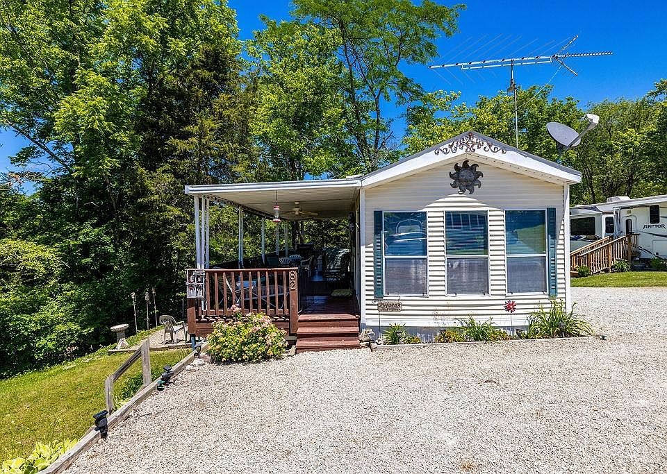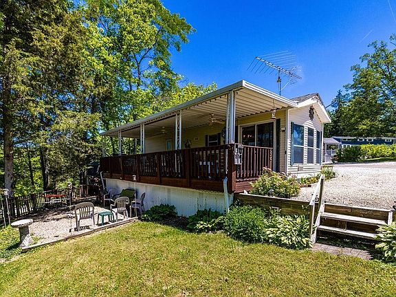 This beautiful, fully-furnished Park Model will become your HAPPY PLACE! Set among the trees this cozy cottage has a great view of the park and the golf cart included provides fun transportation to the pool and pavilion for weekly fun events. Ainsley's restaurant is just down the road providing a fantastic view looking out over the lake while enjoying a meal and drinks. Kent's Marine is there offering a wide variety of amenities and Jay's Mid-lake Pub is a few hundred yards up the road with delicious food drink and fun. Come check this home out and drive the park to get the feel of the park life style. You will want to be here like so many others!