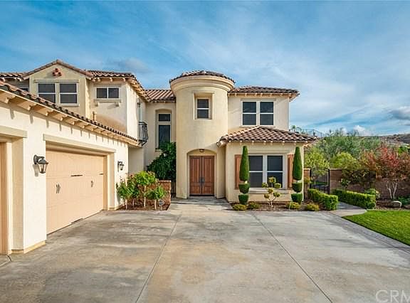 Exclusive Crystal Ridge Community, Sought after Spanish floor plan #3 buyer to confirm this home is almost 3980 sq. ft. Double door entry with coffered ceiling's & foyer. Mohawk wood laminate flooring & carpeting. Full bathroom & bedroom downstairs, powder room for the guests, 3 fireplaces, one in the formal living room, F/P family room. F/P in the large master bedroom, with a double French doors to the balcony. Master Bathroom features a his & her walk in closets, extra large spa tub with jets, walk in shower, his & her vanities with marble counters, Romeo balcony to look out from the bathroom. Large laundry room upstairs with plenty of cabinets. Gourmet kitchen features double ovens, large island with a vegetable sink, beautiful granite counters & bar. French doors leading to a large covered patio the full length of the house, formal dining rm. with French doors leading to the back yard. Very large kitchen for entertaining, with lot's & lots of cabinets. 4 car garage.. The backyard is so large you can still add a pool. This is a must see home, you are 3.5 miles to Loma Linda University, Loma Linda Medical Hospital, VA Hospital & LLA Academy. 10 Minutes to Grand Terrace High school, Shopping & Freeways. A none smoking home..