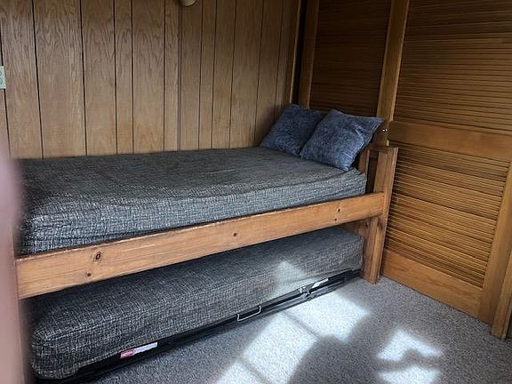 Rural location with private deck and yard. Washer and dryer are in the mudroom/entry. 2 bedrooms on either side of the trailer, one has a full-sized bed, one has a single bed with pull-out trundle. Lots of built-in cabinets. Perfect for a couple, single or small family. Dogs (well-behaved non-aggressive breeds) are welcome with additional $150 non-refundable cleaning fee. We will rent for a minimum of 5 months, but will rent on a longer term basis as well. Furnished, includes utilities! Older place, cute and cozy inside. It's been rented through airbnb the last few years, is now being rented longer term (minimum of 5 months).