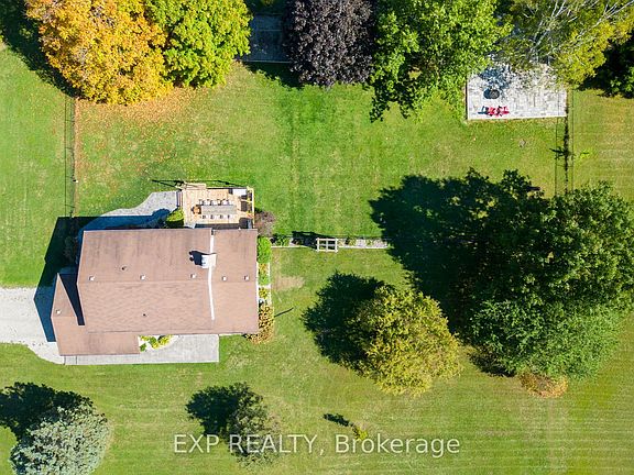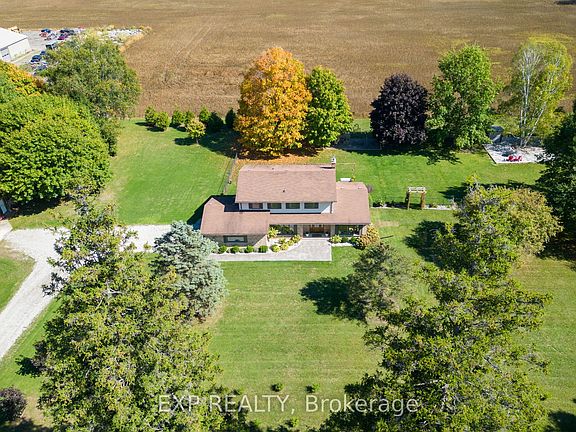 3.25 acres of country living just outside Ilderton and less than 20 minutes from London. Spacious 2-storey home with vaulted living room, main floor family room, laundry and powder room. Four large bedrooms upstairs including primary with 4-piece ensuite. Second floor 5-piece bath with double sinks. Finished lower level with family room, wood-burning fireplace, gym area. Recent updates: windows, front and sliding doors (2022), 2 heat pumps for shop (2022), stamped concrete (2023/24), stone patio (2025), landscaping (2024), new well pump (2025), wood stoves (2023/24), second-floor bath (2025), Lennox furnace and A/C (approx. 3 years) with Life Breath system, lower level family room with drycore flooring (2023) shingles (2015). Nearly half an acre fenced yard, covered porch, updated deck, play set, and 32x32 stone patio with fire pit. Heated and air conditioned shop (appx 30x60) with water, separate 100-amp hydro and separate attached shed. Country property with privacy, mature trees and space for family and hobbies. A rare find close to town.