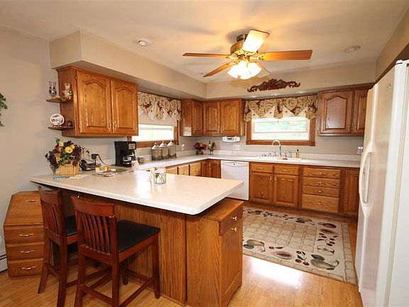 This lovely home has been well cared for. 3 bedrooms, 2 1/2 bathrooms, 3 car garage on 2.5 acres doesn't really describe this house. Your guests can enter into the formal living room, or your customers can enter through a separate entrance to the office, both entrances from the southern style front porch. Large Open Kitchen with spacious counters, pull out shelves and a breakfast bar. Large Dining room with a built in hutch, dining room is open to the kitchen, The family room has a spot to put a woodstove.Patio Doors open tot he screened in porch, looking over the patio and the built in fire pit. The yard is spacious with professional landscaping and mature trees. There is a 3 car attached garage, the 3rd stall has a full set of cupboards in the back. There is 30 X 60 Shed with half paved and have dirt that was used for ponies. There is an office area in the shed that is heated and has water and a water heater, well and electric. Small building is finished and can be used for many things. This is located right off of Hwy 29, West of Marathon in Rib Falls.