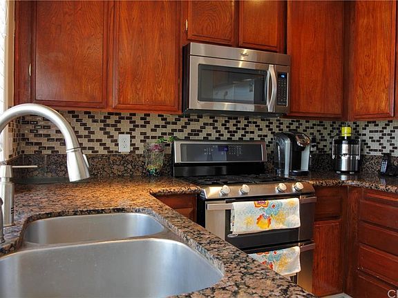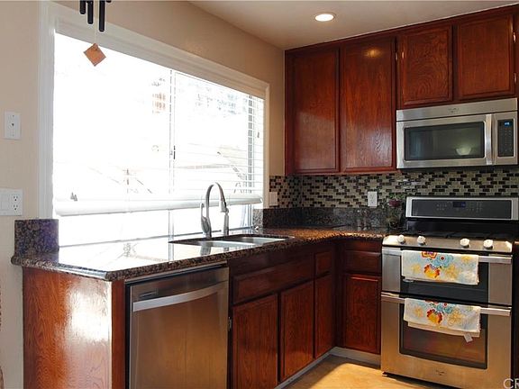 This wonderful townhome style condo offers many great features. It has an attached two car garage that leads into a utility/laundry room. Located downstairs are a powder room, living room, dining room and kitchen. The dining room has a large sliding door that leads to a nice sized, private patio. There are three bedrooms and two bathrooms upstairs. Upgrades include granite kitchen counter tops, brand new ceramic tile, laminate wood flooring, ceiling fans, and recessed lighting. This community is centrally located with easy access to shopping and the 5 freeway.