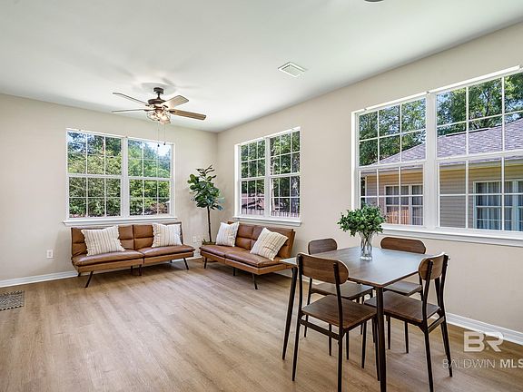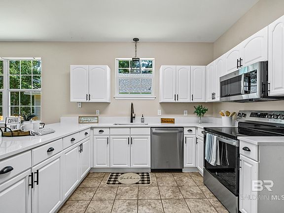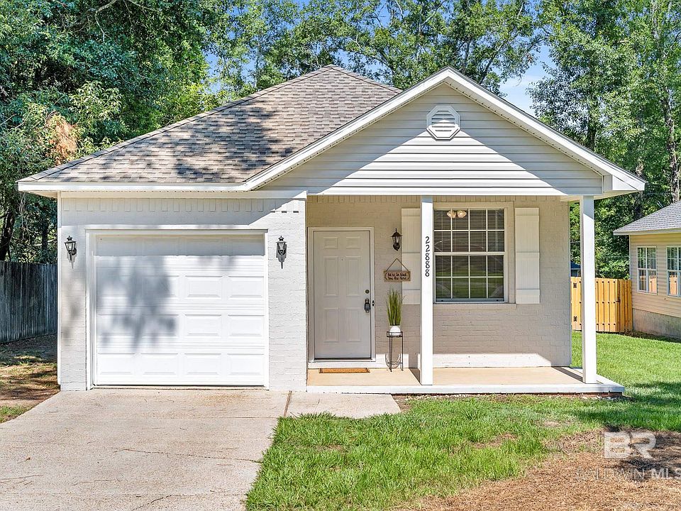 Adorable updated 3 BR/2 BA HOME with a FENCED IN YARD and a single garage under $245K in Robertsdale! Great location just a few blocks from Honeybee Park. NEW FORTIFIED ROOF as well as FRESH PAINT throughout the entire home including walls, doors, trim, ceilings, and cabinets. Other updates include NEW QUARTZ COUNTERS in kitchen and baths, new stainless steel kitchen appliances, new sinks and sink plumbing fixtures, new light fixtures and more. New flooring in primary bedroom and living room. This home has a split floor plan. At the front of the home are bedrooms 2 and 3. In the open concept living space, the large kitchen is open to the living room and dining area. The primary suite is located off of the living room and has double sinks and a walk in closet. There is a separate laundry room and a 1 car garage. Out back is a cute little porch with a new railing overlooking the fenced in yard. Come see this affordable and charming home today! Current termite contract with Wayne's. Per lender, ineligible for an FHA loan contract until July 16th. One or more members of the selling entity is a licensed real estate agent in the state of Alabama. Buyer to verify all information during due diligence.