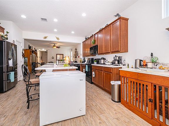 Discover this charming residence available for rent in Apopka's Silver Oak Community! This beautifully designed "Aventura" model by Surrey Homes features a welcoming front porch, three bedrooms, and two bathrooms, all arranged in an excellent floor plan. The attached two-car garage adds convenience, and the solar panels enhance energy efficiency, leading to lower monthly electric bills. An extended rear patio provides a spacious outdoor area perfect for entertaining guests. Natural light and beautiful flooring flood the living spaces, while the open layout facilitates easy entertaining between the kitchen, dining room, and great room. The expansive primary bedroom includes a well-sized bathroom with a walk-in shower, a quartz dual-sink vanity, and a spacious closet. Both the primary and secondary bedrooms feature walk-in closets, and the guest bathroom is equipped with a tub/shower combination and a quartz vanity. The ample kitchen is fitted with a large center island topped with quartz countertops. The Homeowners' Association (HOA) grants access to community amenities, including a pool, dog park, playground, and clubhouse. This centrally located community offers easy access to major highways, downtown Winter Garden, the West Orange Trail, and excellent shopping and dining options.