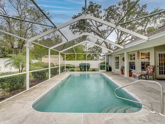 Contact the Official Listing Agent Tracie Maler. You'll love this open and bright, split floor-plan 3 bedroom, 2 bathroom, pool home with fully fenced back yard and 1863 sq ft of living space. Enter through double doors to the living room dining room combo with vaulted ceilings and triple sliding glass door that open fully letting the outdoors in! Kitchen has plenty of storage, breakfast bar, closet pantry, breakfast nook with lovely views of the pool. Master bedroom has high ceilings, two nice sized walk-in closets, private door to lanai for that late night swim. Master bath features a soaking tub, separate shower, dual sinks. Two oversized bedrooms with large closets share the full bathroom. This bathroom opens to the pool for convenience. Sip your favorite beverage from the private lanai and relax in the elec heated 12x24 sports pool. Large inside laundry includes cabinets, utility sink, closet storage. 2 car garage equipped with pull-down stairs to attic storage, electronic screen, side door. Full size shed in back yard.