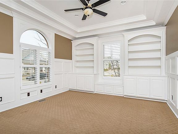 - Interior: WetBar, Built In Book Shelves, Hardwood Floors, Ceiling Cathedral, Wood Work Painted, Ceiling Tray