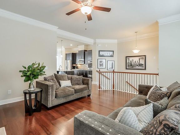 Welcome to this better than new 3 story townhome. This beautiful brick home is situated in a wonderful gated community with a pool, clubhouse, gym, dog park, playground and common green space. The home boasts 3 bedrooms all with private ensuite bathrooms, one of which is located on the lower floor allowing it to serve in dual capacity as flex space or office. The fabulous chef's kitchen features an oversized island great for entertaining and food preparation. Upgraded stainless appliances include double ovens and LG refrigerator/freezer. The walk out deck off the kitchen overlooks a lovely green space and is perfect for grilling out or your morning cup of coffee. The third floor features the Master Bedroom Suite with double sink vanity, separate tile shower, garden tub, water closet and walk in closet. A 2nd guest bedroom with full bath, walkin closet, laundry room and linen closet complete the upstairs living. Lower level provides extra storage closets under stairs and in the 2 car garage. The walkout patio is covered and can be enjoyed year round.