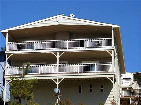 Located in the beautiful community of Oak Shores in Lake Nacimiento, this outstanding custom home has glorious views of the Lake. Be in awe of these views from various rooms with two levels of decking; an ultimate entertaining feature. This spacious home boasts 3,400 square feet of living space with four bedrooms and four and a half bathrooms. Other rooms include a separate interior office and a game room with a wet bar and bathroom. With a gourmet kitchen offering granite counter tops, a pantry, an island and wine rack, this is the ideal kitchen for cooking enjoyment. The large driveway and three car garage provides plenty of parking for recreational vehicles or toys to take to the lake. Whether you are looking to relax, entertain, or simply soak in the sun, this home is truly a must see. Contact Oak Shores Realty at Lake Nacimiento for More Information: (805) 472-9030