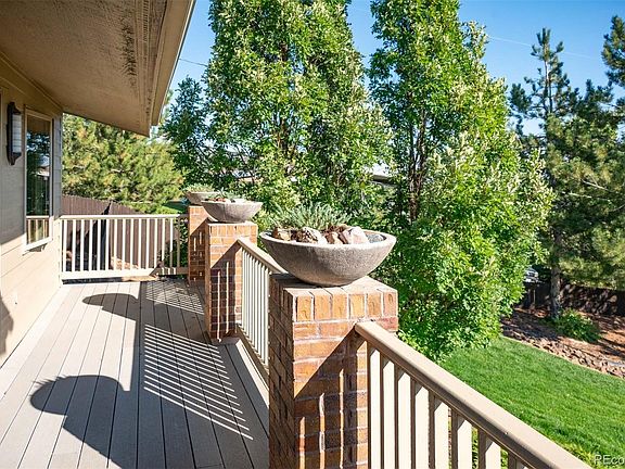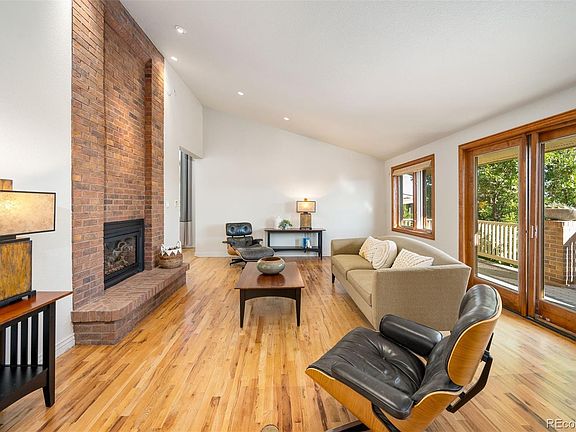 Nestled at the base of South Table Mountain, where nature's beauty harmonizes with luxurious living, this distinctive and stunning residence epitomizes the Colorado lifestyle, offering a serene retreat with breathtaking views. As you enter, a dramatic foyer bathed in natural light welcomes you, showcasing vaulted ceilings, stunning custom skylights and Pella windows - creating a warm, inviting atmosphere throughout. Experience comfort underfoot with zoned radiant-heat travertine floors and elegant oak hardwoods. In the living room, a floor-to-ceiling custom brick fireplace serves as a striking focal point, complemented by a generous balcony perfect for soaking in the unparalleled vistas.