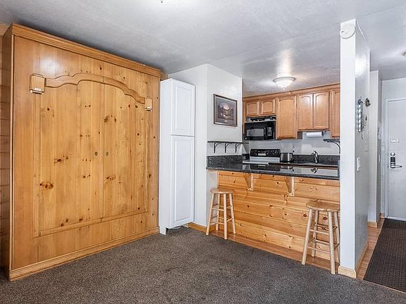 This adorable studio is conveniently located in-town with a short walk to shopping, dining and entertainment. Beautifully upgraded with bunk area for extra sleeping. Upgrades include but are not limited to new subfloor, Kraftmaid cabinets, granite counter tops, extra storage under kitchen island, new refrigerator, newer water heater, custom bunks with storage, Queen Murphy bed, bathroom tile and subfloor, custom distressed beam mantle, doors and trim to name a few. The unit is south facing with plenty of natural sunlight and wooded forest views. This opportunity is what you have been waiting for. The complex has a shuttle bus stop directly in front making it easy to get to the ski resort. This cozy little studio is ready for immediate personal use. The unit is located in building just steps from the pool, laundry and bbq area. HOA amenities also include a ski locker, pool, hot tub, BBQ's, and laundry facility with low HOA dues. All property viewings need to follow these rules of entry: