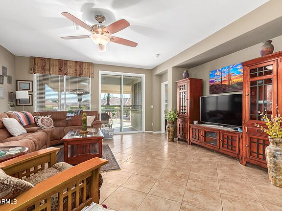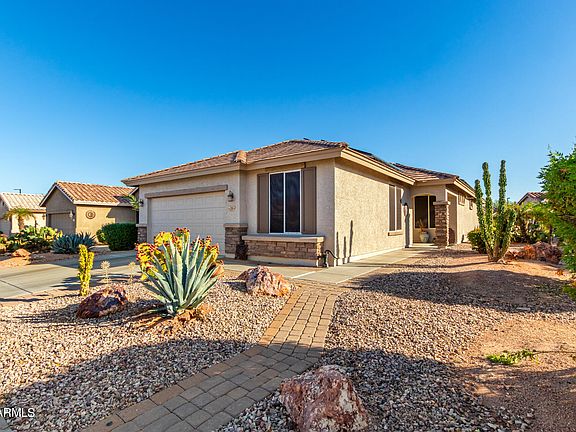 Priced Reduced!! Great location!! and floor plan in Sundance Active Adult Community. Within walking distance of golf course-community center-pools-pickleball courts & and the gym. 2 bedroom 2 bathroom, with the bathrooms and Kitchen being upgraded recently. All. new appliances in Dec 2023. A new washer and dryer were purchased in 2021. The home has an extended covered patio with beautiful landscaping around the entire home. New PVC irrigation front and back in Dec 2022. New exterior paint in Sept 2022. 24'' extended garage with additional '10x10' golf cart space. The entire garage has an epoxy floor. Low eclectic bills with leased solar fully transferable. The home has been maintained and lived in lightly with one person in the home