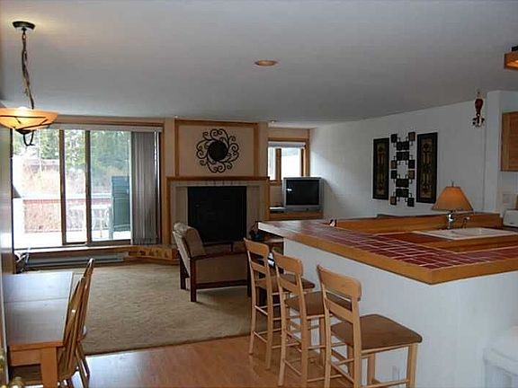 BEAUTIFUL ONE BEDROOM on the river. Walk to skiing across the bridge, just steps out the front door with Summertime, river & bike trail access. New wood flooring in dining room and kitchen. New living room furniture. Murphy bed in living room make this a comfortable condo for 4. Nice rec building with pool and hot tub. Common area water feature & BBQ. Common garage parking. Sunny private deck. $239,000