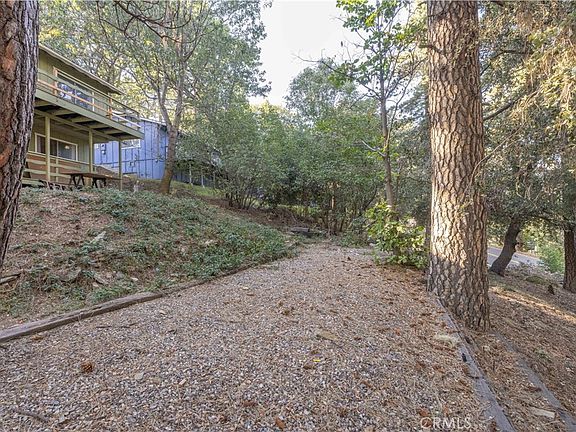 Nestled in the Trees, You'll find this Crestline Gem! Home has been Remodeled and Unique Reverse floor plan with a Open Kitchen layout, to a Spacious Living Room and a Abundance of Windows for that Natural light. Also offering Vaulted Ceilings, Living Room Fireplace for those Chilly Nights, 2 bedrooms and 1 full bath, with an Upstairs Deck. Walk downstairs to your very own Master Suite, including its Own Fireplace, bathroom, and very Large walk in closet/work studio/or office. Master bedroom offers its own Separate Entrance for easily exiting or entering the home. There is the Convenience of a Level Parking pad for those snowy days and your Own Driveway, led up from a dirt access road, with a Detached 2 car garage. Close to Lake Gregory and all that Crestline has to offer! Home would make a perfect Vacation Getaway, Full Time Residence, or Airbnb. Let's start Making Mountain Memories!