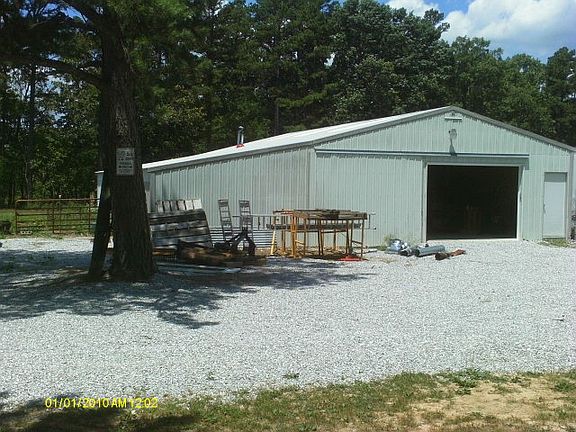 This was a mobile that has been completely insulated and covered, but can't tell from outside. Large covered deck. stocked pond, pasture, and 40x50 shop finished inside. Located close to Big Creek Trail Rides. Very private off the road. It has some nice dog kennels with water and elect. Great little mini farm, raise some vegetables and your own beef or kids in a rural enviroment.