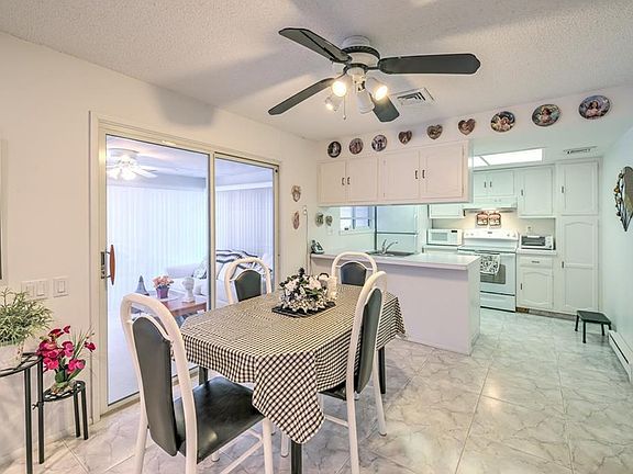 Light, bright and beautifully maintained home. Very desirable floor plan. Spacious living room, a dining room off the kitchen with ceramic tile throughout. 2 bedroom, 2 full baths, 1 car garage and an all season room. New a/c unit.