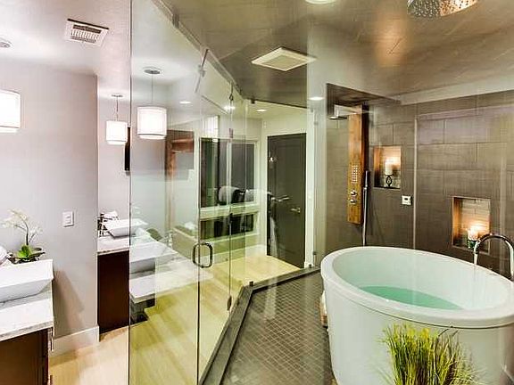 "The Surfrider at the Del Mar Beach Colony" is a stylish 3BR +loft, 4 Bath home located just 700 feet from the sand. This distinctive home features a versatile floor plan, an abundance of indoor/outdoor entertaining space complete with a 9 foot fire pit, and is fully secured with a custom IPE gate and fencing. As you enter the home, the spacious kitchen opens seamlessly to the living room and dining room areas, creating a spectacular visual experience of elegance and functionality. High Definition TV's, fireplaces, sky lights, as well as surround sound speakers are located in both the living room and dining room areas. Looking through the wide living and dining room glass doors into the back yard offers a visually stimulating tropical setting of patio and lawn area surrounded by luscious bamboo plants, sitting walls and an eight foot fire pit. Privacy and solitude only seven hundred feet to the ocean is what the developer has infused into this beach side paradise. Entertaining creates an expression of passion within the granite counter top gourmet kitchen which features what we feel is the greatest appliance package and layout we could possibly offer. *Leibherr RB1410 Refrigerator/Freezer/Wine Cabinet. *Fisher & Paykel DishDrawer series Dishwashers-Each unit features two independent dish washing drawers. *6 Burner Viking Range/Oven/Microwave unit. The upstairs offers a stunning master bedroom as well as two additional bedrooms. The master retreat opens to a private patio space with etched glass along the outdoor deck that is perfect for connecting with the outdoors. Adjoining the master bedroom retreat we have created the ultimate spa experience, a sanctuary for renewal, including a large spa shower enclosure, complete with a stand-alone Japanese soaking tub and a steam shower to foster relaxation and feelings of wellbeing. A flat screen TV allows viewing pleasure while being fully submerged in the soaking tub. The tranquil master retreat is truly a rejuvenating experience.