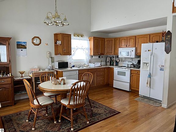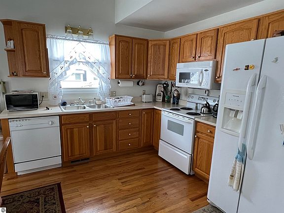 Open floor plan with hardwood floors, one bedroom and full bath on main floor and two bedrooms with full bath upstairs. Attached garage and fenced backyard. Just a couple of blocks from Tawas City Park.