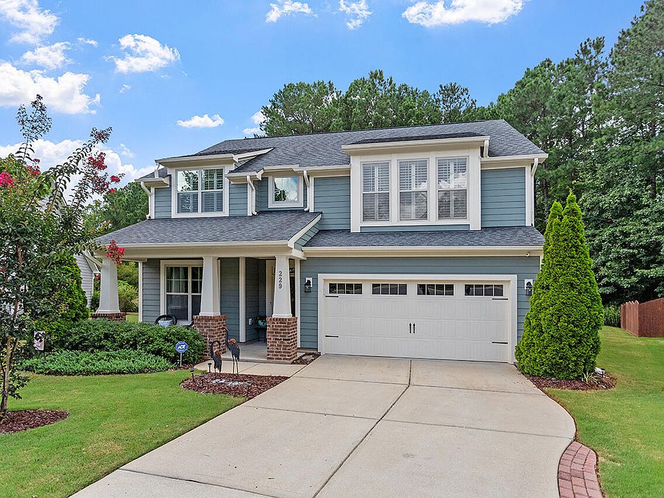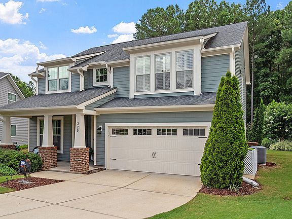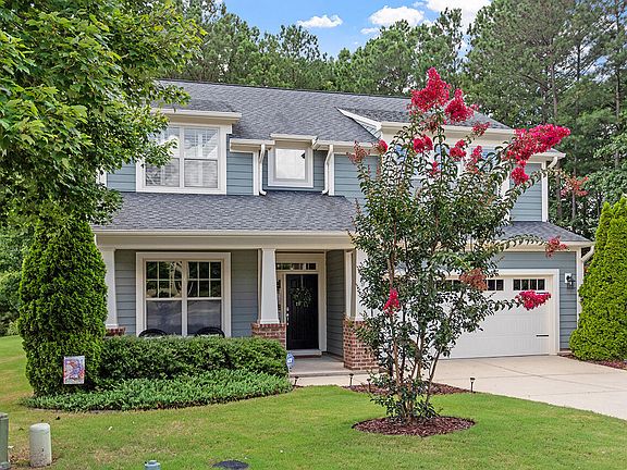 Welcome to this charming, premium private cul de sac home backing to woods. This lovely, well maintained 2 story home has it all! Exquisite mill work & mouldings throughout. Beautiful hardwoods on 1st level. Kitchen W/gas range, wall oven, & breakfast bar opens to eating nook & large family room W/gas FP. Enjoy the convenience of a 1st-floor study. 2nd level has 3 large BR's W/multiple closets and oversized loft. Primary BR overlooks picturesque wooded yard for natural beauty & wildlife. En Suite W/dual vanity, garden tub & tiled shower. Just some of many features include soft close drawers, convenient drop zone, nest system, plantation shutters, gator garage system, built in speakers, Elfa closet system & under cab lights. Embrace the tranquility of the private screened porch overlooking level wooded backyard and the privacy of a cul-de-sac location. Community resort style pool w/lazy river & slide. Basketball, tennis, fitness center included in HOA! Convenient to new extended 540 for easier commute to RTP, Airport, Beach.