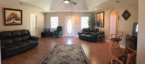 This cute 1440 Sq ft house sits on a .5 acre lot just minutes from town. From the front door, you walk into a spacious living area with trace ceilings and recess lighting. The split floor plan design is perfect for any family. In the kitchen you will find custom cabinetry with an abundance of storage and an additional pantry. The guest bath has a double vanity with bedrooms on either side. The master bedroom has a walk-in closest with master bath. The back yard is fully in closed with a wooden privacy fence and cement patio for enjoying your time outdoors. Call today to book showing!