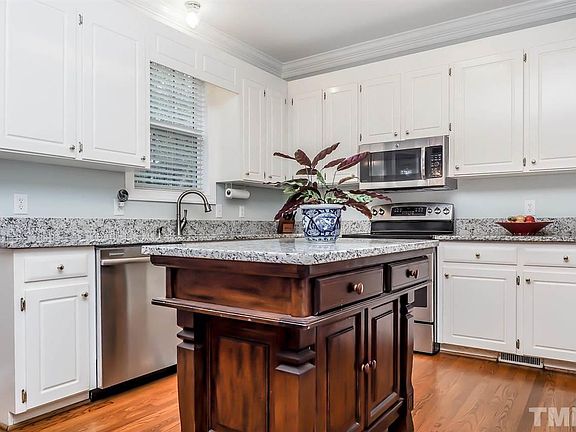 Tranquil, sought-after neighborhood with no HOA! Enjoy over 1/2 acre on a cul-de-sac with a fenced yard and screened porch. Cared-for, in pristine condition. Kitchen updates include granite countertops and stainless-steel appliances. Beautiful hardwoods, 9 ft tall ceilings & crown moulding downstairs. Enjoy country life in the heart of North Carolina, with quick access to several nearby towns. Seller includes 1 year home warranty by American Home Shield. Blinds convey. Click 3D tour link!!