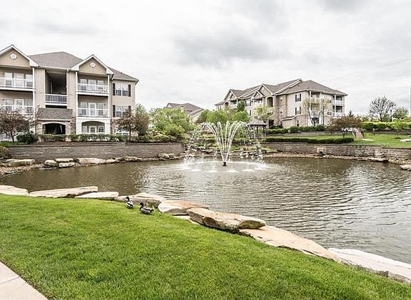 New agent, new price. Rare ground floor unit with attached garage. Drive right in and enter your condo through a private entrance. Almost 1,300 sqft BIG. Many details you must see: NEW carpeting, 42â kitchen cabinets, brush NICKEL hardware, GRANITE counter tops, CROWN molding and chair rail, ceramic tile floors, TV entertainment nook, recently painted sculpted walls. Ceiling fans with remote, 2 bedrooms, 2 full bathrooms. Private patio facing the lake. Of course, all the amenities youâd expect in a condo community: POOL, fitness room, theatre, business center. Close to Page Extension, KATY trail, and Creve Coeur Park.