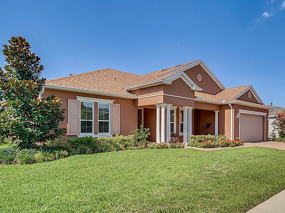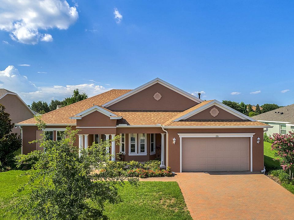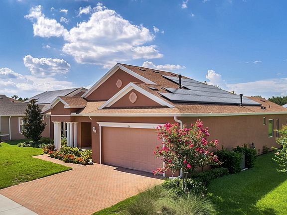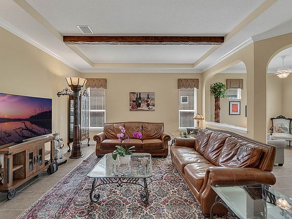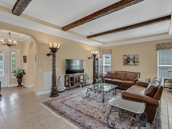 Upscale Trilogy 2 bed/2 bath home + den/office on a premium 75' private lot set against a green space behind. $80k+ in builder & post-move in upgrades w/ 20" ceramic tile throughout, 8' raised panel doors, elegant 5.5" baseboards, tray ceilings and crown molding in nearly every room. The Kitchen has granite tops, tile backsplash, S/S appliances: 5 burner gas cooktop, upgraded 42" cabinets finished w base & crown molding. The den/office is right off of the great room and could be a poss 3rd bed. Enjoy garden and long greenbelt views out of the den/ great room/ the lanai and the master suite. The owner's suite is washed in sunlight through large windows. The master bath has a comfort height granite vanity w/ his/hers sinks and sep garden tub, glass enclosed shower and a huge walk-in closet. The upgrd laundry room is finished in upper/lower cabinets and matching granite. The 2.5 car tandem garage is treated w custom epoxy surface. Full solar reduces power bill to approx $11/mo. The spacious screen enclosed covered lanai is extended privacy by intentional landscaping & has gorgeous garden views. Trilogy HOA includes: guard gate, internet/cable, alarm, lawn/landscape maint, 57k sqft community center, fit ctr, resort-style pool/spa, bocce & pickle ball, tennis, & more! Ask your agent for survey & upgd attachments & see tour links for 3D floor plan & vid tour.
