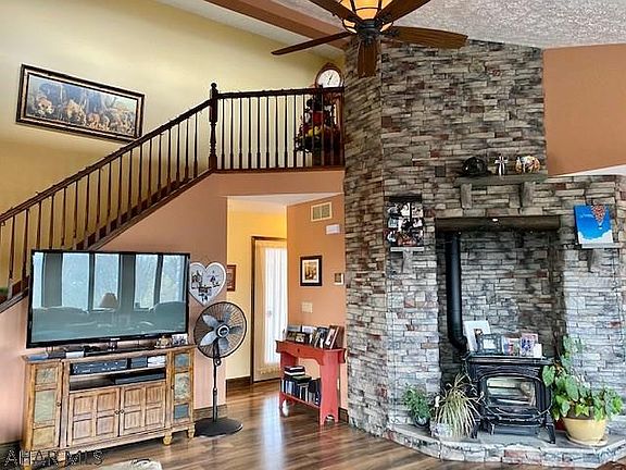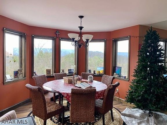 Custom built log home with stone accents and multiple balconies to enjoy the gorgeous views. This 4 bedroom, 4 bath house built in 2010 on 6.98 acres is located in the Bellwood Antis SD. The floor plan on main floor is open w/cathedral ceilings and lots of cabinetry & an island in the kitchen. Lower level has exercise room & sauna. Owner's bedroom suite is 32x19 with private bath. 27x26 garage, 10x20 out building for dogs or horses. Cute doll house shed also included. A must see house!