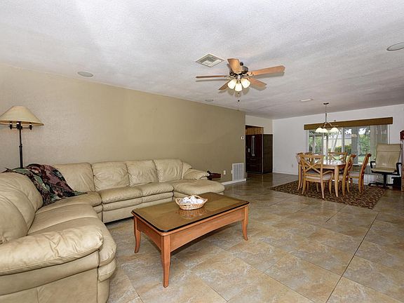 Immaculate home on an oversized,fenced, lot in La Mancha! 18'' tile in most rooms, newer berber in 2nd and 3rd b/rooms. Kitchen has granite counters, and stainless appliances. Patio is 55 ft long!! Also has footers, if one wants to enclose part or all. Summer kitchen with bar, sink, and separate grill area. Great place to entertain! There are 2 sheds, one is 24x12, and has window A/C, electric, and work bench, the other is 12x10 w/electric. The private back yard backs to huge berm - no neighbors! The garage is almost 350 sq. feet - lots of shelves, and storage areas. Extra concrete is on the side, for boat, or RV. Accordian shutters for the front of house, and panels for the rest. This one is a gem, and will not last long!