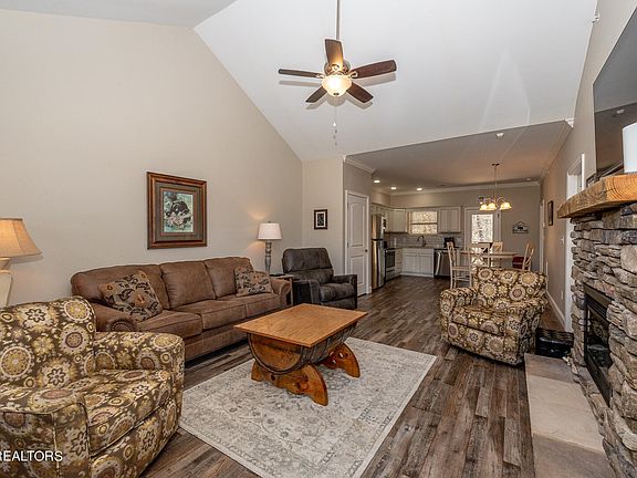 This exclusive condominium offers a rare opportunity to own a piece of tranquility in the breathtaking surroundings of the Smoky Mountains, nestled within the prestigious gated community of Cades Cove Reserve. Step inside and be greeted by the elegance of granite countertops and a captivating stone fireplace, setting the stage for cozy and inviting nights in your mountain retreat. This meticulously maintained, one-owner, second-level unit boasts vaulted ceilings and is presented in pristine condition, ensuring a comfortable and luxurious living experience. Whether you envision this as your personal mountain getaway or a savvy addition to your short-term rental portfolio, satisfaction is guaranteed. Indulge in the array of community amenities, including a well-appointed clubhouse with a stacked stone fireplace, fitness room, outdoor fire pit, and swimming pool, offering the perfect setting for both large gatherings and intimate get-togethers with loved ones. Additionally, HOA fees cover mowing and all exterior maintenance, ensuring a hassle-free lifestyle. Conveniently located just minutes from Cades Cove and the Great Smoky Mountains National Park, this condominium provides easy access to a wealth of outdoor adventures, including world-class fishing, hiking, biking trails, and more. With restaurants, shopping, and endless recreational opportunities right outside your door, every day presents a new opportunity to explore and embrace the beauty of mountain living. Don't miss out on the chance to make this exclusive condominium your own and experience the unparalleled charm and serenity of the Smoky Mountains lifestyle.