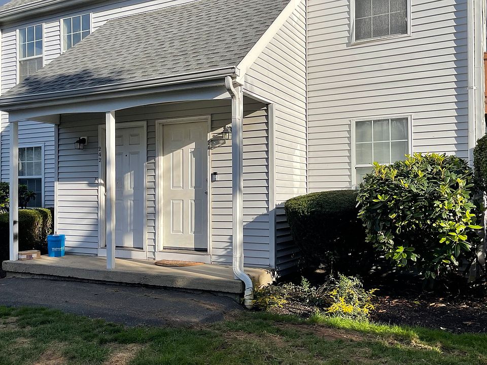 Well maintained and updated first floor 2 bedroom ranch end unit at North Farms. The galley kitchen boasts stainless steel appliances, granite counter tops, updated cabinets and tile flooring. The dining room opens into the living room with all updated flooring and a slider to your private deck. Plenty of closet space in the primary and second bedrooms. Bathroom has been tastefully updated and decorated. Washer and dryer are conveniently located in the hallway on the main level. This unit has a very large full basement with 576 square feet of a finished heated and cooled family room/play room/office/den. Lots of room for storage in the rest of the basement. This complex is pet friendly and located close to shopping, restaurants, parks and much more. Gas heat and central air conditioning complete the package.