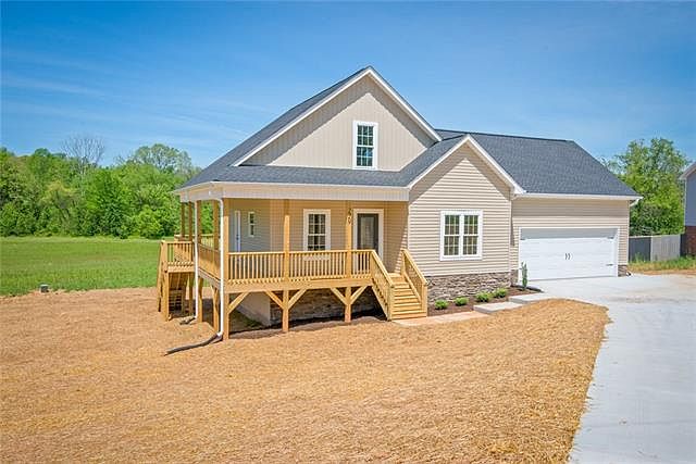 NEW CONSTRUCTION, Anticipated completion 3/31. A total of 1447 htd sqft w/ 945 on main, 502 on upper level. A Professional Interior Designer has put all of the elements together to create a gorgeous color palette with all of the finishing touches. The home features: Beautiful Kitchen w/ custom wood cabinetry & SS Appliances; Granite Counters in Kitchen & Baths; Crown Molding in main living areas; Flooring consists of Wood (finished on-site) in Kitchen/Dining & Living Room, Tile in Baths & Laundry, Carpet in Bedrooms; Master suite w/ large walk-in closet, located on the main; Upstairs provides 2 additional Bedrooms & Shared Bath; Exterior has Stone Accents incorporated in w/ Vinyl Siding; Expansive wrap-around, covered porch that extends from the front & around the side to an open deck off the back; Vinyl, double-hung windows; Architectural Shingled Roof; Attached Double Garage w/ remotes; Large Walk-In Crawl Space; Established Neighborhood w/ NO HOAs & No Restrictions! Don't Miss Out!