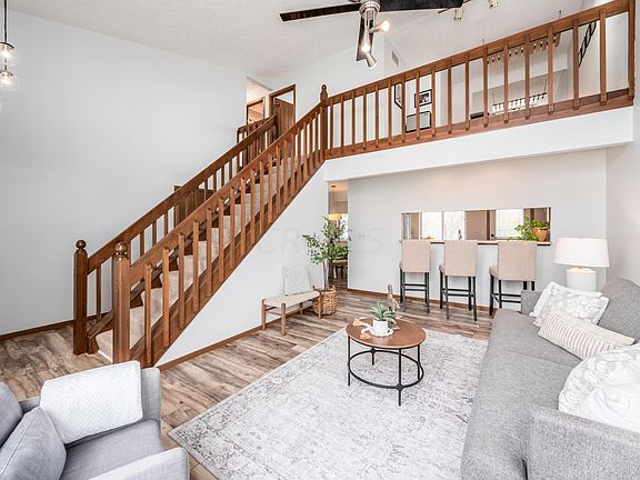 This home in Worthington Schools has been beautifully updated and well maintained. The foyer opens to a living room with vaulted ceilings. Stainless steel appliances, tile floors and granite counter tops are found in the kitchen. The family room is highlighted by a stone fireplace and has a sliding door opening to the backyard. A half bathroom and the laundry room are also located on the main level. Upstairs, you'll find a loft, 3 bedrooms and 2 full bathrooms. The large primary suite includes a walk-in closet and updated full bathroom. Enjoy additional living space in the finished lower level with a half bathroom. The spacious backyard offers a private deck and patio with a pergola. New roof in 2021 and new tankless water heater. Great location with easy access to 23 and 270.