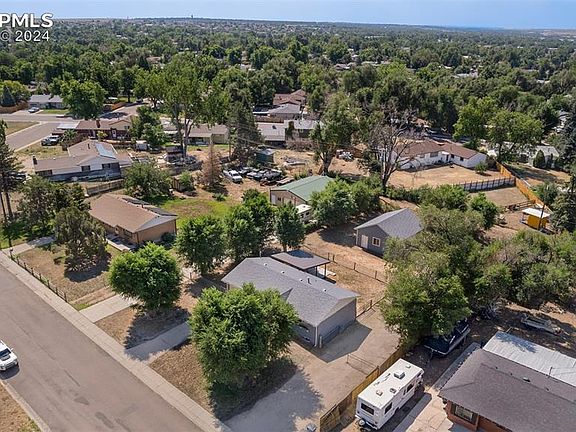 Discover This Charming Home Situated on a Quiet Street, Perfect for Peaceful Living While Being Conveniently Close to Local Schools and Offering a Quick Commute to Ft. Carson. With a Nearly 1/2 Acre Lot, This Property is Ideal for Those Needing Extra Space for Hobbies, Storage, or Simply Enjoying the Outdoors. As You Approach, You Are Greeted by Lovely Curb Appeal with Two Huge, Mature Trees, Adorable Planter Boxes and Nicely Painted Brick. The Expansive Lot Provides Plenty of Room for RV Parking or Storing Other Large Vehicles and Toys. A Large Workshop in Back is Perfect for Projects or Additional Storage as it is a 3-Car Sized Garage with Opener. Enjoy Outdoor Entertaining on the Front Wood Deck or the Large, Covered, Concrete Patio in Back. The Fully Fenced Yard is Great for Corralling Pets and Kiddos, with Additional Yard Space Encompassing The Workshop Area, and Surrounded By Mature Trees for Added Privacy. Inside, Natural Wood Flooring Runs Throughout the Main Level, Creating a Warm and Inviting Ambiance. The Upgraded Kitchen Features Modern Cabinetry, Granite Countertops, Stainless Steel Appliances-Including A Nearly New Dishwasher, Pantry Closet, and an Eat-In Dining Area. The Primary Suite Includes a Walk-In Closet and Access to the Fully Updated Main Level Bathroom, Complete with Tile Flooring, Updated Vanity and Fixtures, and a Tiled Tub/Shower Combination. One More Cozy Bedroom is Located on the Main Level. The Finished Basement Boasts 2 Additional Bedrooms and Fully Updated 3/4 Bathroom. A Large Family Room Serves as a Versatile Space, Ideal for a Home Office, TV/Rec Room, or Home Gym. Laundry Facilities are Conveniently Located in the Large Mechanical Room, with Appliances Included. This Home Has Been Updated With a Brand New Furnace (2024), Hot Water Heater (2023) and AC. Offering the Perfect Blend of Comfort, Style, and Functionality, This Unique Property is Your Opportunity to Own a Piece of Paradise