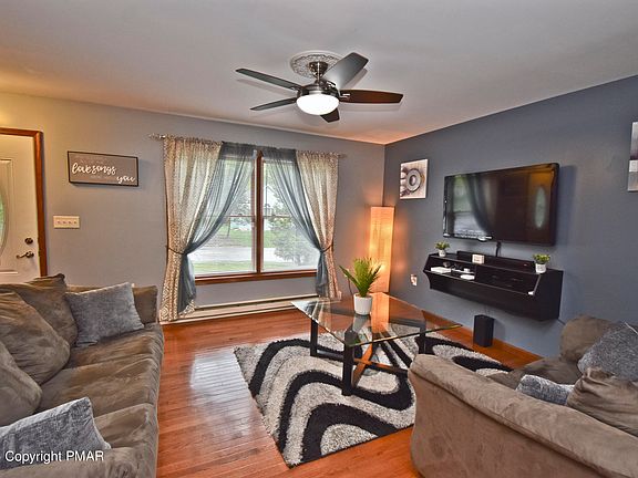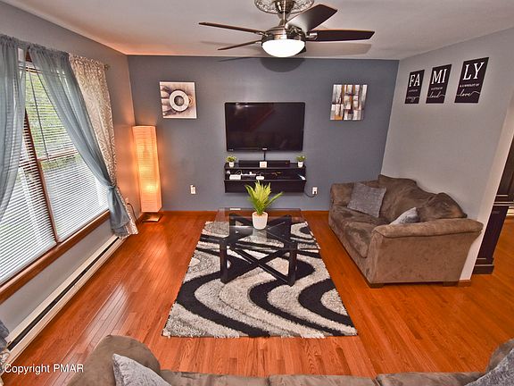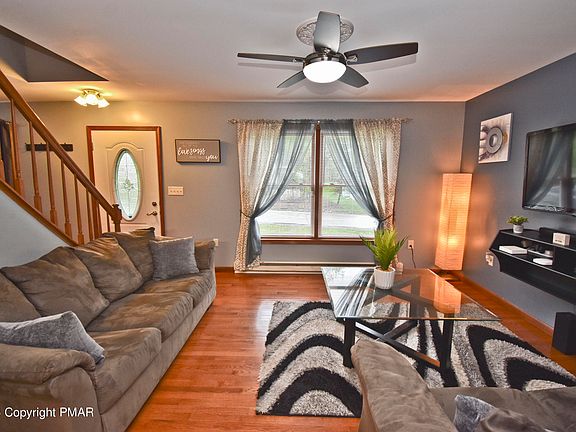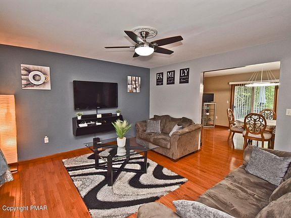 3bd/2.5ba Cape Cod retreat in the heart of the Poconos nestled in an STR FRIENDLY community. Hardwood floors flow throughout the home, creating an inviting & warm ambiance. The 1st floor boasts a Formal Living & Dining Room, ideal for hosting gatherings. The SPACIOUS Eat-in Kitchen has stainless steel appliances & ample cabinet space. Adjacent is a dining area w/ sliders to the deck, offering picturesque views of the expansive backyard. 3bds upstairs including the Primary w/ a walk-in closet & a BEAUTIFULLY REMODELED bath. Outside, the home boasts a patio area, ideal for summer BBQs or simply soaking up the sunshine. The convenient 1-car garage provides ample storage space for your outdoor gear or vehicle. Plus, w/ a stand-up crawl space, there's even more room for storage. Located just mins away from major highways, shopping centers, & popular attractions such as Kalahari, Camelback, Mt Airy Casino, & the Outlets, this home offers the perfect blend of tranquility & convenience. Whether you're seeking a full-time residence, a vacation getaway, or an investment opportunity, this home checks all the boxes. Don't miss your chance to make this Cape Cod gem your own!