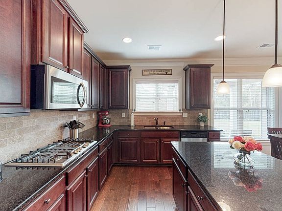 Magnificent 5 bedroom 4 bath 3160 sq ft with bonus rm! Premium lot with room to install an inground pool! Brick & stone accents! Side entry garage! Extra parking! Rocking chair front porch! Hardwood floors & ceramic tile in baths & laundry! Foyer with tray ceiling! Office with french doors! Dining room with wainscoting, archways & coffered ceilings! Living room with wood burning fireplace & coffered ceiling! Gourmet kitchen with double oven, gas stove top, built in microwave, refrigerator negotiable, island with breakfast bar, granite counter tops & pantry opens to breakfast room! Great in law bedroom & full bath 1st floor! Owners suite with vaulted ceiling, fan, chair rail, double sink vanity, tile shower, tub water closet, linen closet & walk in closet with shoe rack & built ins! Laundry rm with washer dryer negotiable! Huge backyard with gazebo & swing set! Privacy fence, covered patio, upgraded landscaping & full sprinkler! Metal spindles on stairs, 2" blinds & gutters!