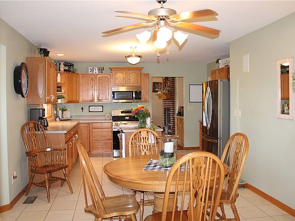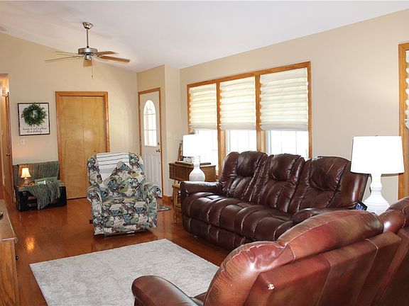 Move right in to this spacious home that checks all the boxes! The moment you enter into the large living room you will be in love with the brick double sided fireplace. This large space is so inviting with the newer hardwood floors and the amount of room it has to offer. The other side of the fireplace is where you will find the cozy family room also featuring newer hardwood flooring. It's the room to relax and enjoy the out side scenery from the French doors. The kitchen is also a great hang out space with plenty of room for all to gather. Lots of cabinets, counterspace, center island and all newer stainless appliances. The dining area creates the extra seating space for guests. The master bedroom is a great size with a walk in closet, master bathroom recently updated and patio doors to the beautiful large deck. The two additional bedrooms also have great space and ample closets. A laundry room is just off the attached garage with the utility area as well and storage closet. Come take a look, have a seat on the large covered front porch or go around back and chill on the large deck with views of a country setting! Brand new white vinyl 7' fencing just installed on the North Side of the home!