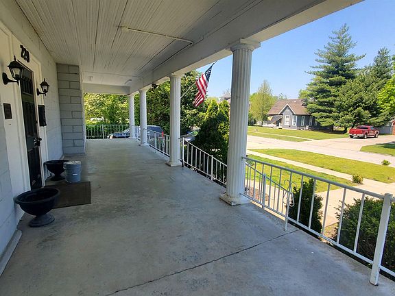 Great opportunity to become the proud owner of a DuQuoin Landmark home - This 2 story rock-faced block home offers loads of character and built to last construction - large entry foyer with original staircase open to spacious LR with window seat - original unique fireplace - many hardwood floors plus new flooring on main level- main level sleeping room or optional office - dining room fit for a king with custom wood panels, wood ceiling beams, upper plate railing, newly install custom wall tiles and built in China cabinets - ornate window grills - many replacement windows - back deck off kitchen with plenty of cabinets - 7 bedrooms - 4 bathrooms all remodeled with spacious tile showers - full basement with new ceramic tile floors and bathroom - laundry room - updates include newer central air system - updated wiring - Radon system installed in 2021 -new roof in 2021- large corner lot in great neighborhood - detached garage - fenced yard with pitching pen included - concrete front porch with plenty of room for entertainment