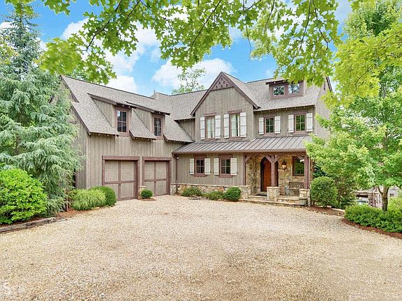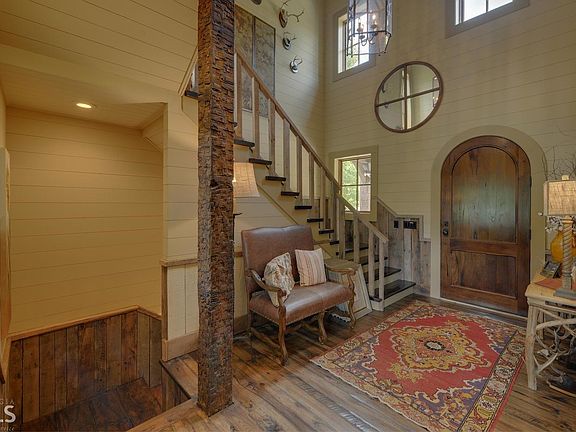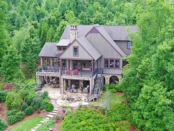 This 7BD, 5FB, 2HB custom home was designed for entertaining. Rich with character and style, the home features a warm rustic feel with antiques and reclaimed materials throughout. The main floor provides an open floor plan with vaulted ceiling, scraped walnut flooring, lake views and plenty of space to gather around the masonry stone fireplace. The gourmet kitchen includes professional appliances, copper apron front sink and large island with prep sink. A spacious sunroom with fireplace, covered porch and rocking chair deck enjoy lake and mountain views. The terrace level features a family room with masonry stone fireplace, billiards, wet bar, wine cellar and access to a generous covered patio and lakeside fire pit.