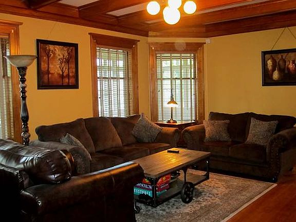 This stately home is stunningly beautiful in every detail! Built in 1905, this 5-bedroom, three and a half bathroom house has hit the right balance between retaining its historical charm and all of its modern conveniences. For example, the turn-of-the-century kitchen has been updated to a $50K chef's kitchen with all of the modern amenities including a 60 inch Wolf range, dishwasher, refrigerator. There is beauty everywhere you look in this one-of-a-kind home located in the Historic Courthouse District. Gorgeous box beam ceilings, exquisite hand carved woodwork, crown moldings, 3 fireplaces, and hand-painted tiles are just a few of the elegant touches featured in this home. Other unique features include a large wrap-around enclosed front porch and a two-car garage which includes a full basement and walk-up attic. There are not enough words to describe this home. It must be seen to fully appreciate the craftsmanship and character of the very special "lady".