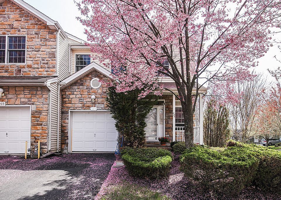 Expected to be impressed! Beautiful three bedroom end unit townhouse in highly sought after Mazdabrook Commons. Custom painting, chair-rail and Crown Molding, Cherry Hardwd flr1st floor, Sun fulled living room, Stone face gas fire place, deck off livingroom; Finished walk out basement. Very well maintained.