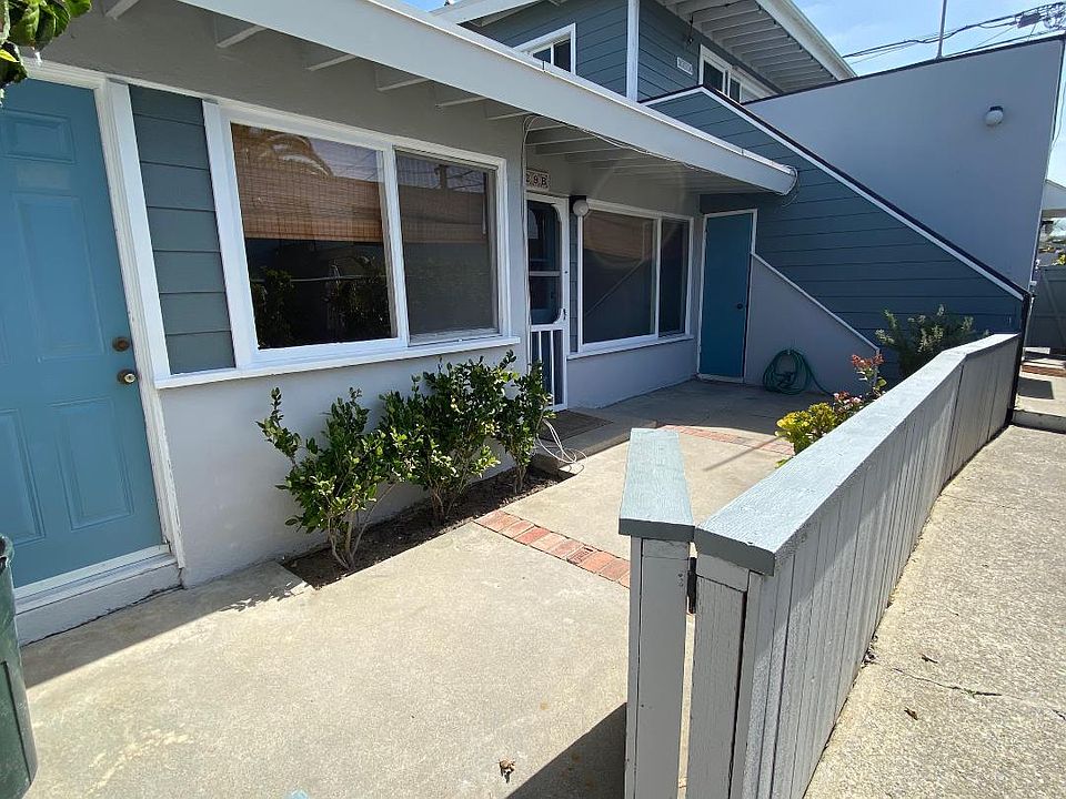 New paint and wood floors. One block to Shaw's Cove Beach 800 square feet Nice patio in front of apartment. No garage--street parking. 1 year lease. Owner pays water and trash. Tenant pays gas and electric cable. No smokers. Cat OK Must have good references and income.
